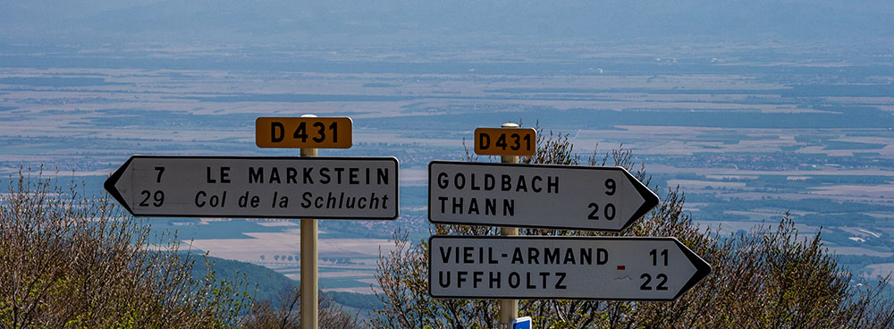 Die Vogesenkammstrasse Route de Crêtes (dt. Kamm- oder Gipfelstrasse )ist eine beliebte Ausflugstrasse in den Süd-Vogesen. Sie beginnt offiziell in Sainte Marie-aux-Mines und endet in Carney. Die Route de Crêtes wurde aus miltärischen Gründen gebaut. Sie verläuft ununterbrochen westlich und unterhalb des Gipfelkamms und bewegt sich zischen 950m und 1250m. Der höchste Punkt der Strecke ist der Pass zwischen dem Markstein und dem Hartmannswillerkopf in der Nähe des großen Bellchen (frz.Grand Ballon) mit 1343 Metern .
