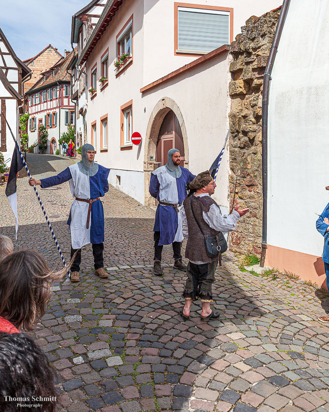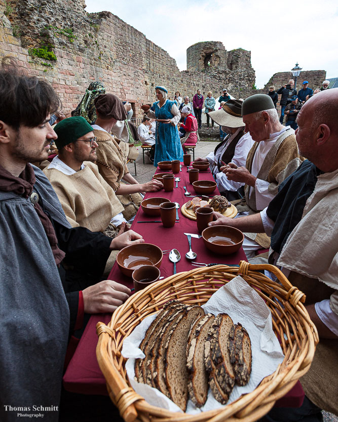 Am 24./25. Mai 2025 feierte das Burgdorf Neuleiningen ein besonders Jubiläum. Vor 500 Jahren, während des Bauernkriegs, gelang es Gräfin Eva von Leiningen/Westerburg die Stadt und Burg Neuleiningen vor der Zerstörung durch die Bauern zu retten. Statt die Stadttore zu verschliessen ließ sie diese öffnen und bewirtete die Bauern mit gutem Essen und Wein.